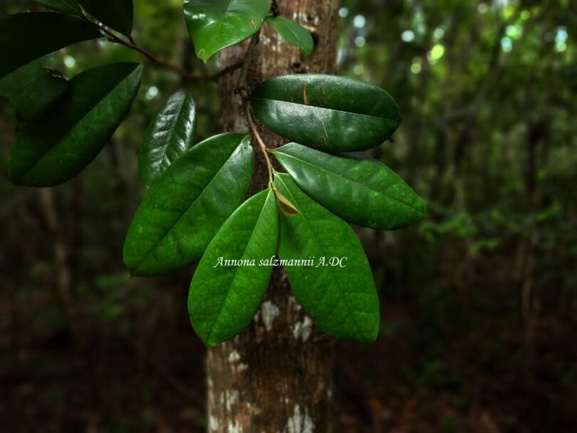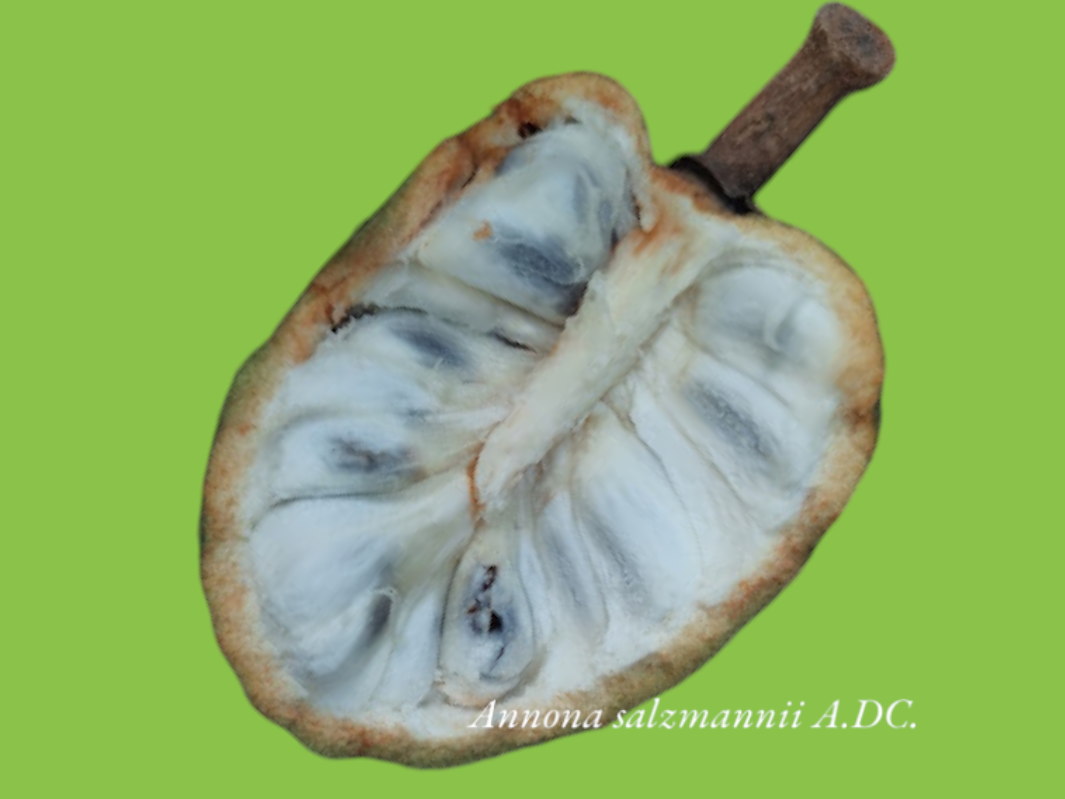 Árvore de até 15 m, endêmica do Brasil (Flora do Brasil 2020 em construção, 2018). Popularmente conhecida por pinaíba e araticum , foi coletada em Floresta Ombrófila (Floresta Pluvial) e Restinga associadas a Mata Atlântica e ao Cerrado nos estados de Alagoas, Bahia, Espírito Santo, Paraíba, Pernambuco, Rio Grande do Norte e Sergipe. Apresenta distribuição ampla, EOO=575401 km², diversos registros depositados em coleções biológicas, inclusive com coletas realizadas recentemente (2017), e ocorrência confirmada em Unidades de Conservação de proteção integral. A espécie ocorre em múltiplas fitofisionomias e em distintos domínios fitogeográficos, de forma ocasional na maior parte das localidades em que foi registrada. árvore têm potencial comercial. A fruta comestível é apreciada em sua variedade nativa, mas infelizmente a árvore é rara em sua faixa nativa e não é cultivada (Tropical Plants Database, 2018). A madeira é usada apenas para combustível e para fazer carvão (Tropical Plants Database, 2018). Entretanto, não existem dados sobre tendências populacionais que atestem para potenciais reduções no número de indivíduos maduros, além de não serem descritos usos potenciais ou efetivos que comprometam sua existência na natureza. Assim, A. salzmannii foi considerada como Menor Preocupação (LC), demandando ações de pesquisa (distribuição, tendências e números populacionais) e conservação (Plano de Manejo sustentável) a fim de se ampliar o conhecimento disponível e garantir sua perpetuação na natureza.