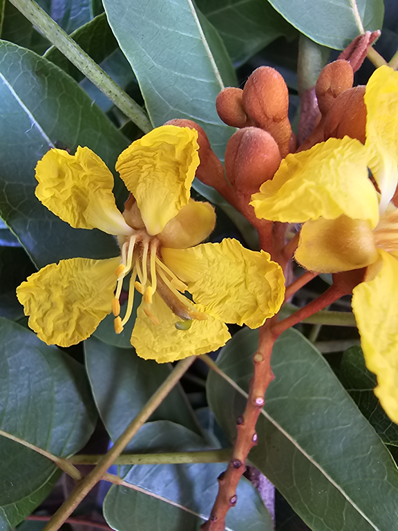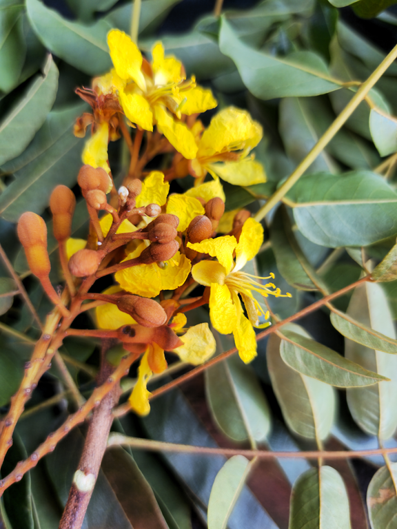 Árvores de 3-12 m alt., tronco com casca suberosa, acinzentada; ramos jovens pubérulos, com tricomas ferrugíneos. Estípulas lineares, ca. 0.3 cm compr., cedo caducas. Folhas imparipinadas, espiraladas, pecíolo 2.5-4.7 cm compr., pubérulo, com tricomas ferrugíneos, raque 10-18 cm compr., folíolos 11-21, subopostos, oblongos-lanceolados, lanceolados ou elípticos, sendo o folíolo terminal frequentemente elíptico, ápice agudo, base simétrica ou levemente assimétrica, com lado maior arredondado, lado menor cuneado, folíolos proximais menores que os distais, proximais 2.7-3.4 x 1.5-1.7 cm, distais 4.9-6.5 x 1.6-2.3 cm, glabros em ambas as faces, raramente com esparsos tricomas na região das nervuras na face abaxial, margem ligeiramente revoluta. Inflorescência panícula terminal, 13-38 cm compr., exserta da folhagem; pedicelo 0.6-2.3 cm compr.; hipanto infundibuliforme, 0.3-0.7 cm compr.; botões globosos, 0.3-0.7 cm compr.; Flores com sépalas de 0.7-0.9 cm compr., tomentosas com tricomas ferrugíneos na face adaxial e esparsamente pubérulo na face adaxial, reflexas na antese; pétalas amarelas, unguiculadas 1.5-2.4 cm compr.; estames 10, ca. 15 mm compr., filetes ferrugíneo-tomentosos, anteras com deiscência rimosa; ovário 11-13 ovulado, viloso com tricomas ferrugíneos. Fruto criptolomento, oblongo, ligeiramente curvado, sublenhoso, 8.5-14.5 cm compr., 0.9-4.3 cm larg, endocarpo articulado fragmentando-se em artículos transversalmente oblongos. Sementes oblongas, compressas, testa lisa de cor atropurpúrea.